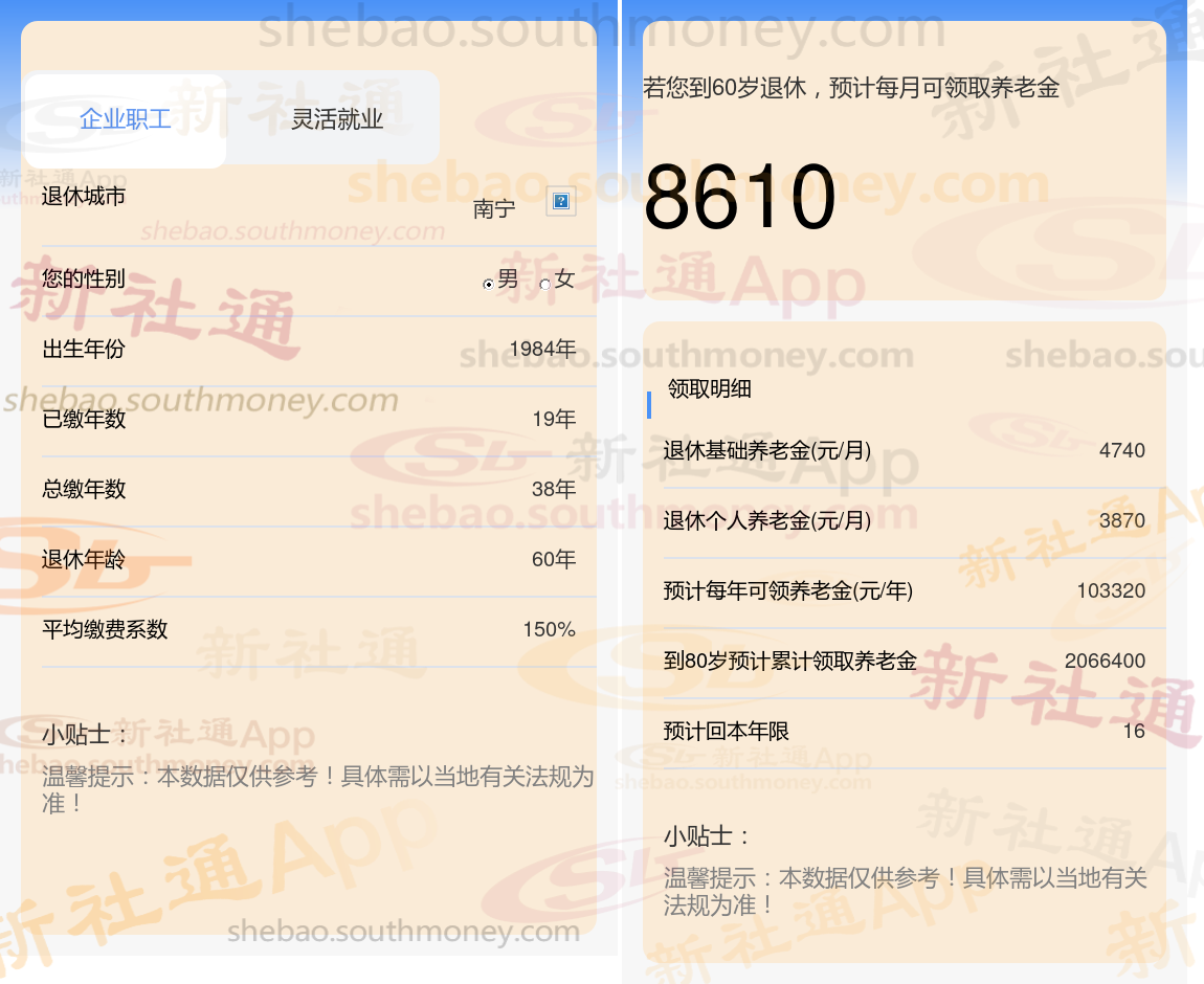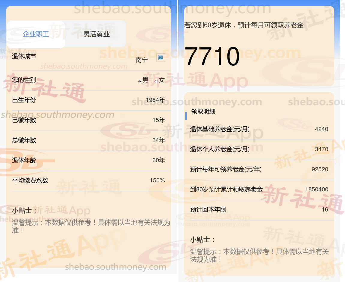 》点击新社通app养老金计算器,快算算你的养老金够不够花!