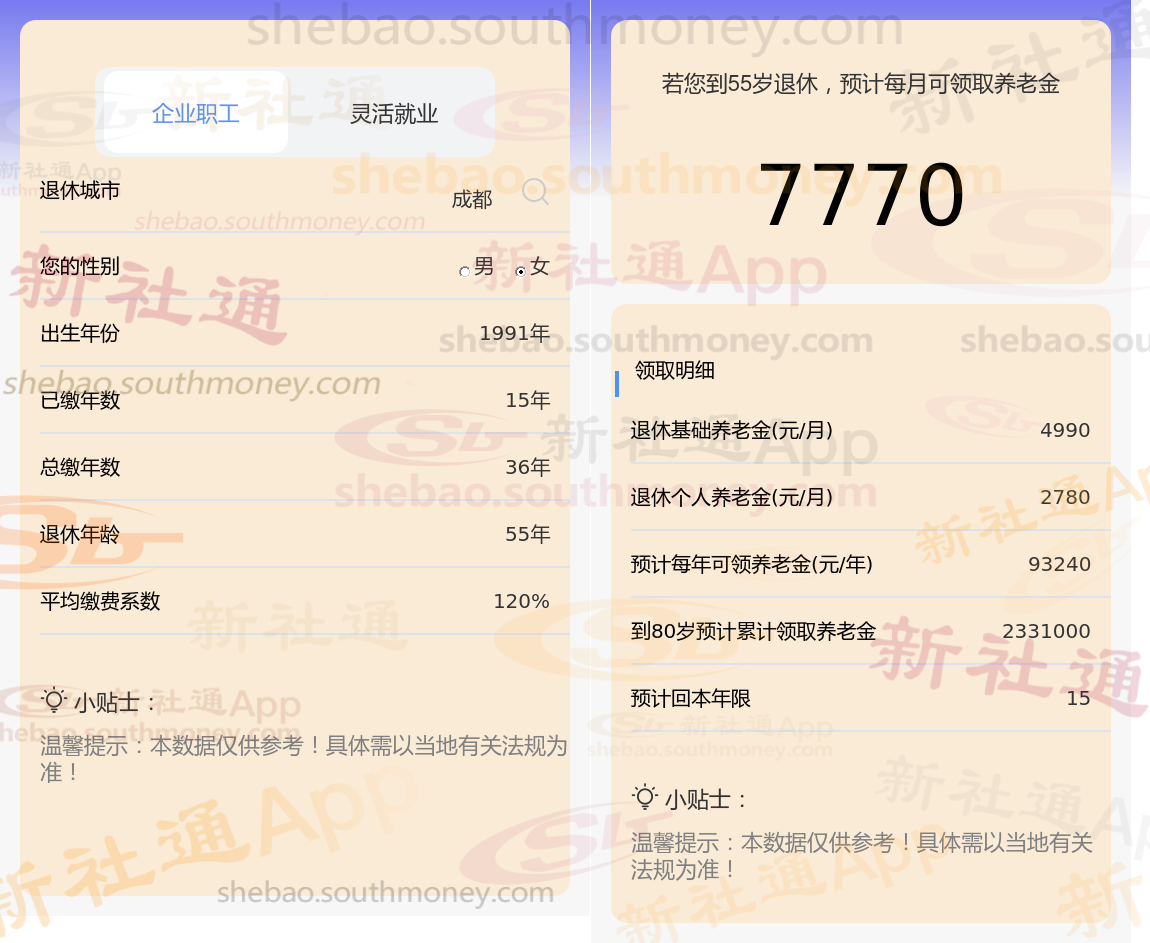 查阅新社通app显示,成都职工退休养老金=基础养老金+个人养老金