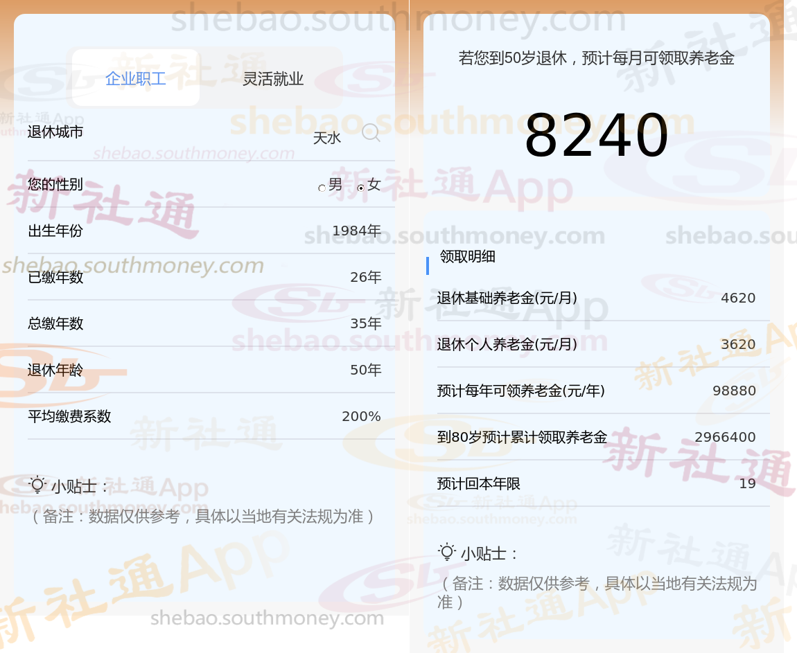 2025天水退休工资多少钱一个月?据新社通app获悉,养老金无疑是大众瞩目的焦点,特别是对于那些即将或已经步入退休生活的人们而言,其数额的多少直接关系到他们日常生活的舒适程度。随着养老保险体系的逐步深化与改进,养老金的计算方式也在不断地更新调整。退休时间、缴费年限以及缴费基数的差异,均会对最终养老金的数额产生显著影响。因此,了解并适应这些变化,对于确保个人退休后的生活质量至关重要。下面随新社通app小编一起来了解天水社保退休工资2025计算方法及天水养老保险要交多少钱吧!