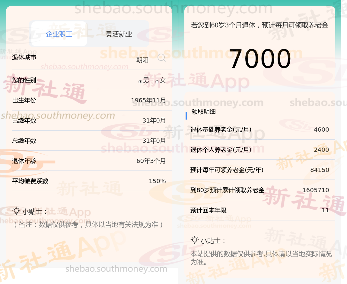 谢某,朝阳人,1965年出生,是拥有31年社保缴费年限的退休男性,缴费档次稳定在150%。岁月流转,他终于迎来了自己的退休时光。