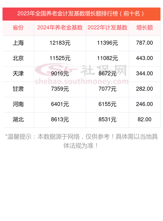 再来看看,全国各城市最新养老金计发基数公布前十名一览