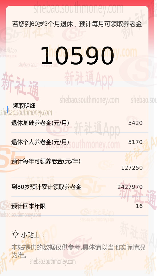 康某,作为一位勤勉的职工,他的养老保险缴纳记录长达35年之久,且缴费档次一直保持在较高的280%水平。基于这些关键数据,我们利用新社通app养老金计算器,结合最新的养老保险法规,对其养老金进行了如下估算: