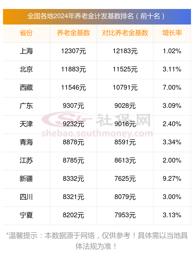 首先来看看,2023年全国养老金计发基数的前十省份一览表