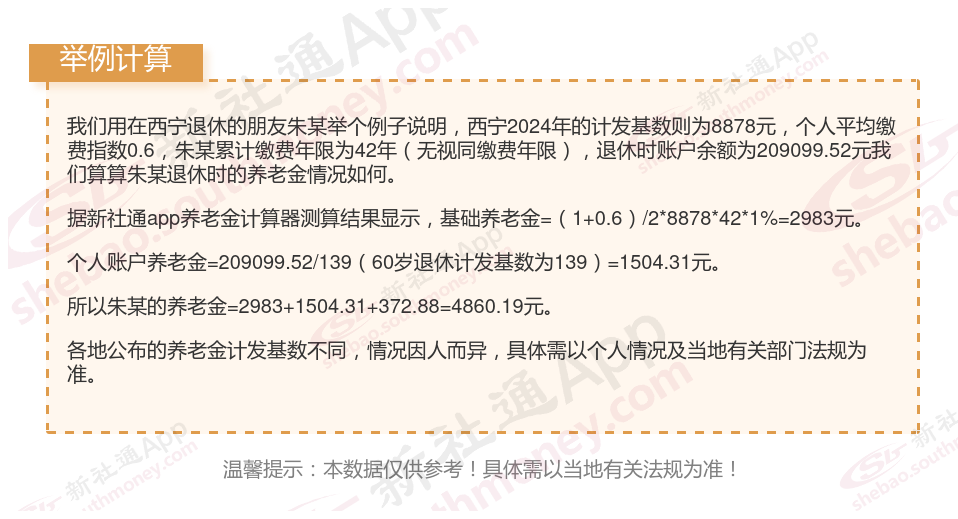 据新社通app获悉: 西宁2025年退休能领多少钱的计算方法如下: