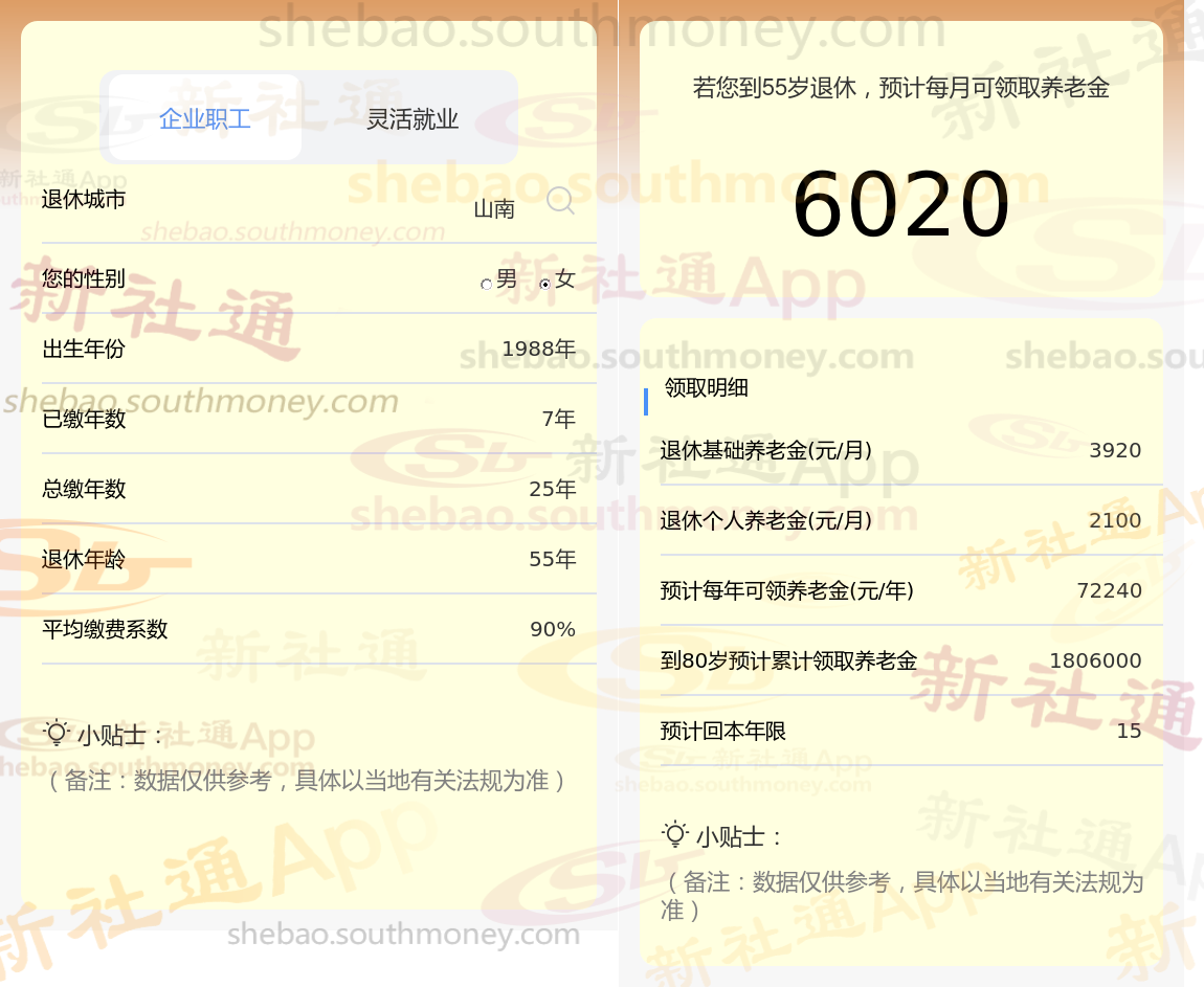 通过新社通APP-养老金计算所得:退休城市、出生年份、退休年龄、缴费系数都相同的情况下,社保缴费年限累计25年时,计算如下: