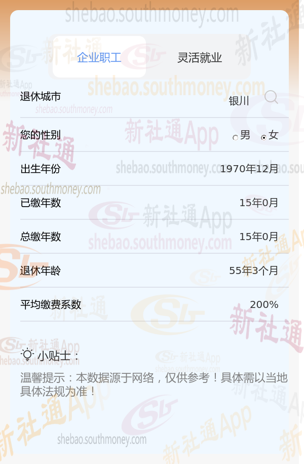 新社通app养老金计算器计算所得: