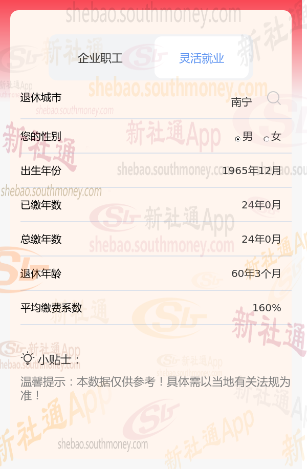 和社保网app一起看个例子,广西南宁工龄24年养老退休金如何计算?